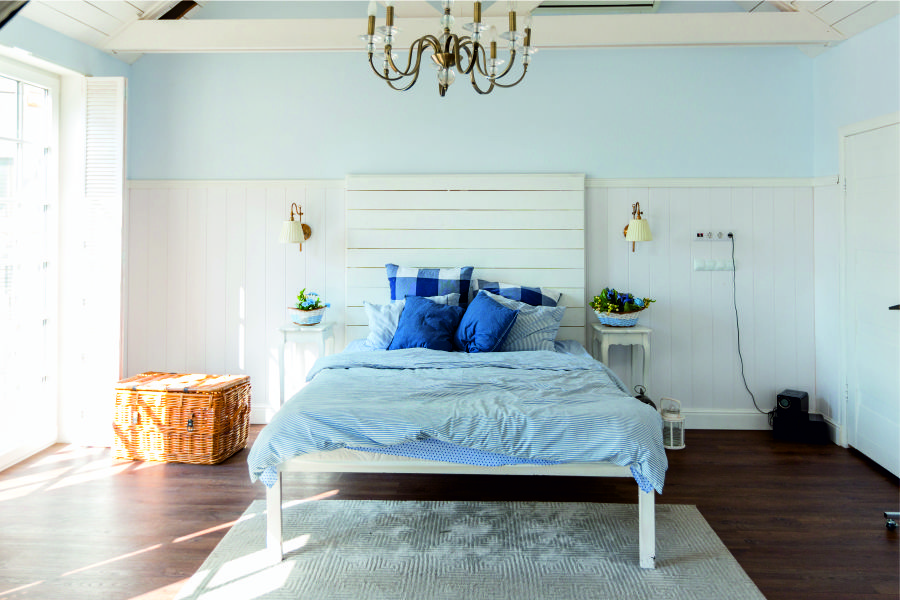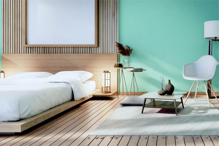 Yatak odası duvarlarının genelinde rahatlatıcı etkisi bulunan açık mavi ve açık yeşil tonlarını tercih edebilirsiniz. Duvarlara hareket kazandırmak için yapabileceklerinizden biri de alandaki renk paletine uyum sağlayabilecek daha koyu renklerden yardım alarak kolon ya da duvarların bir kısmını boyamak olabilir.